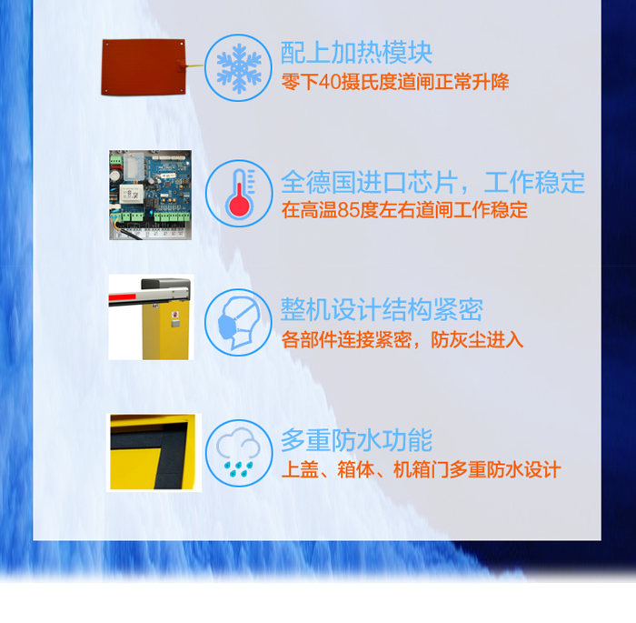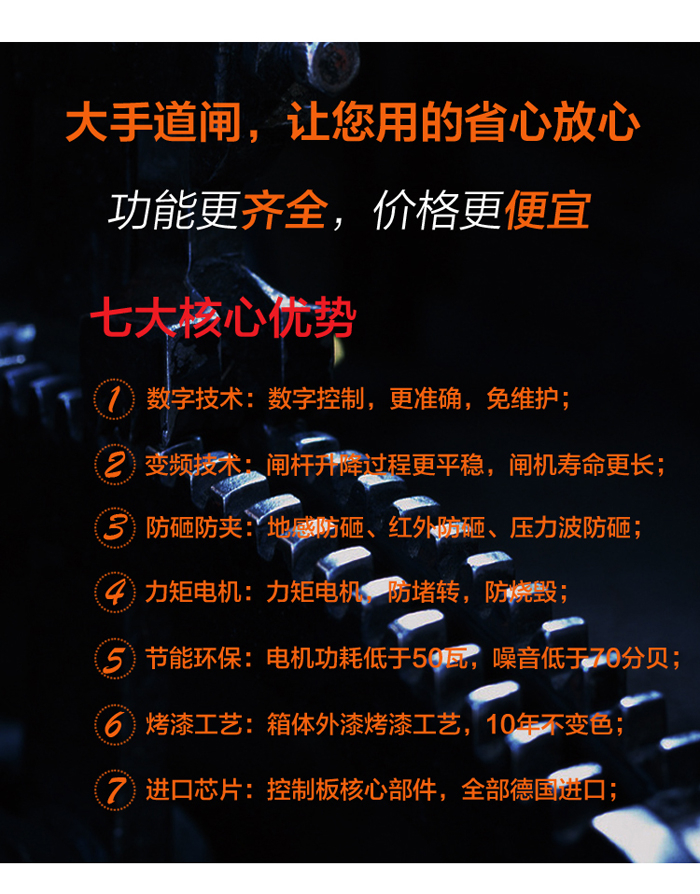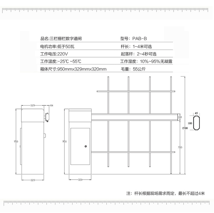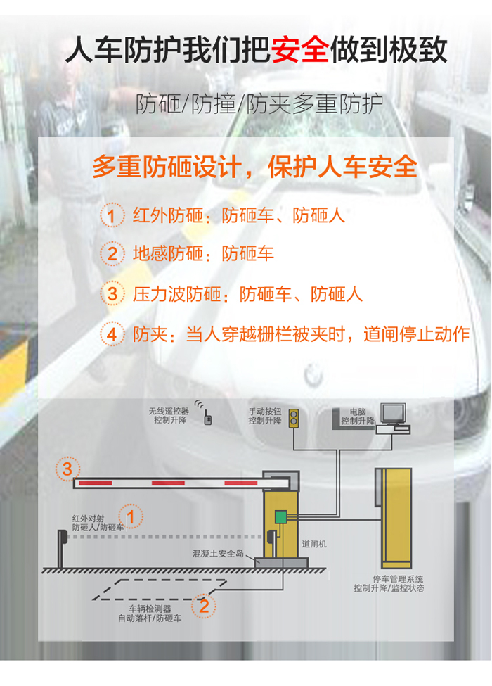 三欄柵欄數(shù)字道閘-B型,外觀結(jié)構(gòu)由三欄柵欄和道閘箱體組成,美觀實(shí)用。三欄道閘采用100W的一體化減速力矩電機(jī),堵轉(zhuǎn)時(shí)無電流沖擊,無過熱,保護(hù)延長控制器的使用壽命。由于是三欄柵欄的原因,其升降速度需要緩慢一些;加上三欄道閘最大優(yōu)勢(shì),可以防止人員從柵欄底下進(jìn)出和柵欄上方跨進(jìn)跨出過功率大主要安裝在各車輛進(jìn)出收費(fèi)口;因此該道閘非常適合一些較為高檔、隱蔽性需求性強(qiáng)的停車管理場(chǎng)合。
